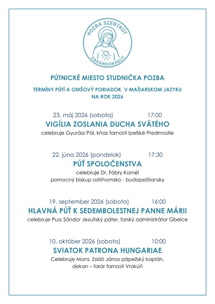 – prvé nedele v mesiaci o 10.15 hod. fatimská pobožnosť  a po nej svätá omša o 11.15 hod.